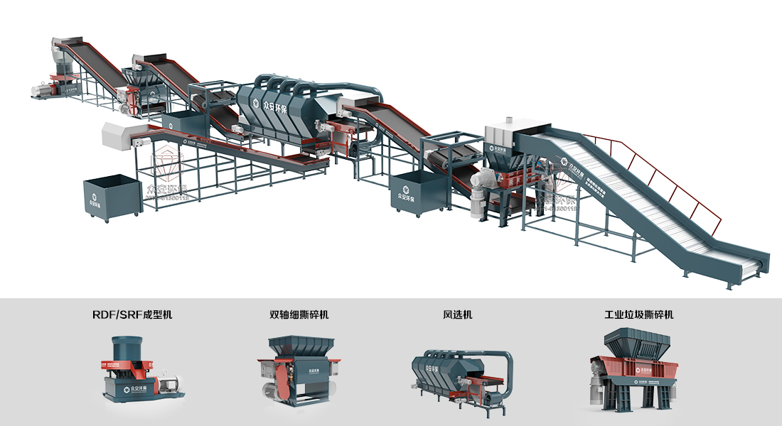 把垃圾變成高熱值RDF其中最關鍵的工序就是粗破和細破,這就需要使用適合的RDF固廢破碎機。眾安環保利用本身的破碎技術優勢,展開在RDF領域的研究,開放目前國內較先進的RDF粗破碎機和RDF細破碎機,大大簡化了RDF處理工藝,實現了經濟和生態價值較大化。該套生產線工藝適用于生活垃圾、工業固廢、造紙廢渣、洗水廠廢渣、紡織廢料、皮革廢料、碎布廢料等多種垃圾原料,制備環保SRF/RDF燃料的預處理粉碎加工。